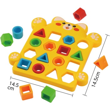 色と形がひと目でわかる!かわいいクマのかたち合わせ!かわいいクマのパネルに丸・三角・四角・六角形のブロックをはめて遊べるかたちあわせです。色とかたちを見比べながら当てはめることで自然と認識力が育ちます。指先を使う動きも身につき、初めての知育遊びにぴったりです。