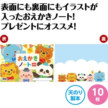 かわいい動物デザインのおえかきノート!自由に描いて楽しめる横型のおえかきノートです。表紙には、クマやライオンなど、かわいい動物のイラストが描かれていて、思わず手に取りたくなるデザインです。天のり製本なので、1枚ずつきれいにはがせて使いやすく、破れや穴が残る心配もありません。10枚入りで、子ども会や運動会の景品、配布用にもぴったりです。