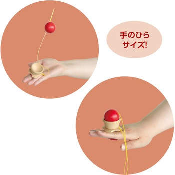 初めてのけん玉にぴったり!指に付けて遊べるかわいいミニけん玉!指に取り付けて遊べるミニサイズのけん玉です。お皿に玉がのりやすい形状なので小さなお子さまでも成功しやすく楽しめます。面ファスナーベルトでサイズ調節ができ手軽にチャレンジできます。