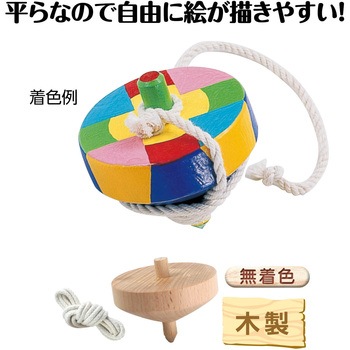 床を傷つけにくい木製軸のコマ!自由に絵を描いてオリジナルのコマを作ろう!木製のコマです。無着色なので、オリジナルのコマがつくれます。平らなので自由に絵が描きやすくなっています。丈夫な組みひもを使用しています。床が傷つきにくい木製の軸を採用しています。イベント・ワークショップにもおすすめです。