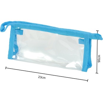 中身がひと目でわかる!使い勝手抜群のクリアポーチ!見た目がスッキリおしゃれなブルー縁取りのクリアポーチです。お気に入りの小物や文具をキレイに収納できます。透明素材だから中身の確認がしやすく、取り出しもスムーズ。軽量で持ち運びやすく、普段使いから旅行まで幅広く活躍します。