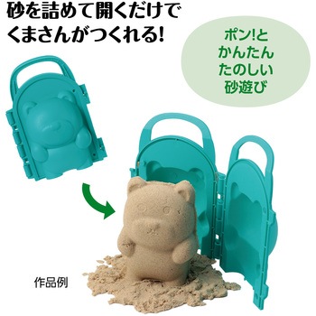 ワンタッチでたのしい砂遊び!砂を詰めて開くだけでくまさんが作れる!くまの形に砂を詰めて開くだけで、きれいな立体くまさんが完成する砂遊びアイテムです。ハンドル付きで持ち運びやすく、セットして開くだけのシンプル構造です。砂遊びの時間をもっとワクワクさせてくれる便利な抜き型です。