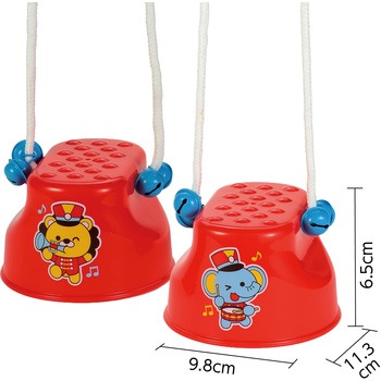 歩くとリンリンと鈴が鳴るぽっくり!歩くたびにリンリンと鈴の音が鳴って楽しいぽっくりです。かわいいライオンとゾウのイラスト入りで気分もアップします。ぽっくり遊びは全身運動につながり、バランス感覚が養え、反射神経もよくなります。手足の運動機能の発達にも繋がります。遊びながら体の基礎をしっかり育てる、おすすめの知育アイテムです。見た目もかわいく、運動が苦手なお子さまでも楽しめます。