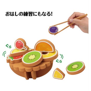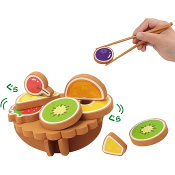 はし使いの練習にも!タルトの台にフルーツをたくさん積み上げよう!フルーツのブロックをおはしでつまんで、タルトの形の土台に積んでいくバランスゲームです。遊びながら自然とおはしの持ち方や指先の使い方を練習でき、手先の発達をサポートします。親子で一緒に楽しめるので幼児の初めてのおはし練習にもぴったりです。