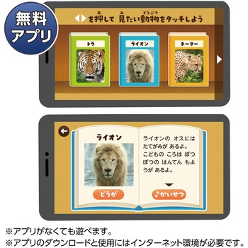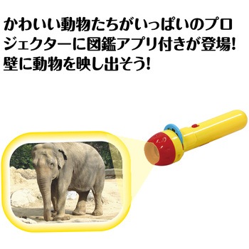 部屋の壁がスクリーンに!動物が映し出されるプロジェクター!お部屋の壁に動物を映し出すことができるプロジェクターです。全部で20種類の動物を楽しく学習できる小冊子付です。また、読み上げ付きのどうぶつずかんアプリがセットになっており、動物の解説文を聞いたり、写真を見たりして理解を深められます。投影と学習が同時に楽しめる新感覚おもちゃです。寝る前の時間や暗い場所でのお楽しみにぴったりのおもちゃです。