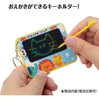 かわいい動物たちがデザインされた、何回でも書いて消せるミニおえかきボードです。キーホルダーとしても使用可能です。繰り返し使えるのでおでかけ先でも楽しめます。