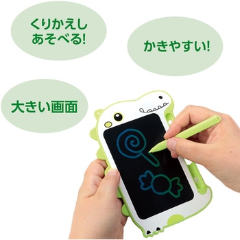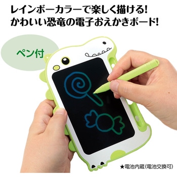 レインボーカラーで楽しく描ける!かわいい恐竜の電子おえかきボード!レインボーカラーで楽しく描ける恐竜デザインの電子おえかきボードです。ペン付きで小さなお子さまでも扱いやすく、繰り返し描いて消して遊べます。持ち運びやすいサイズで外出先でも大活躍します。
