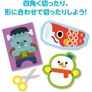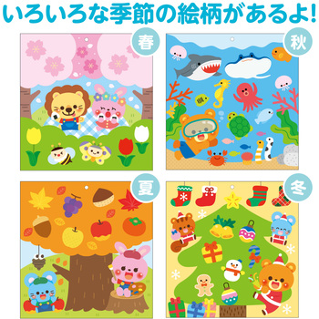 自由に切って、貼って、塗って、世界にひとつだけのカレンダーがつくれる!季節ごとのかわいいイラストを自由に切って貼れるカレンダーづくりキットです。余白には好きな絵を描いたり色を塗ったりしてオリジナル作品に仕上げられます。はさみと液体のりもセットなので、ワークショップやイベント、親子参加型イベントなどでもご使用いただけます。