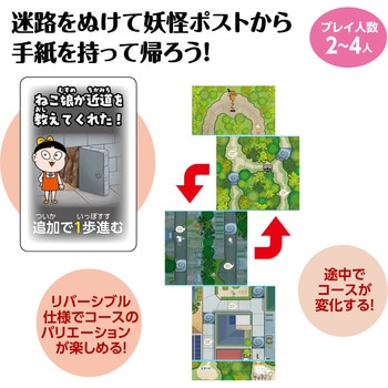 迷路を抜けて妖怪ポストへ!鬼太郎たちと冒険しよう!ゲゲゲの鬼太郎と仲間たちが登場する迷路ゲームです。サイコロを振ってコースを進み、妖怪ポストから手紙を持ち帰ると勝利になります。台紙はリバーシブル仕様で何度でも飽きずに遊べます。