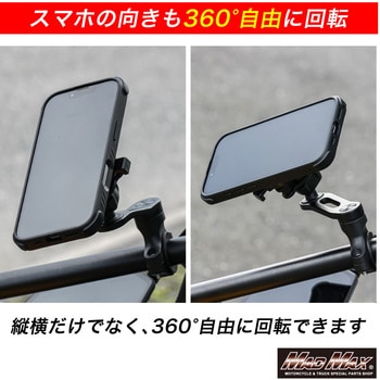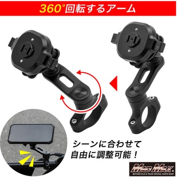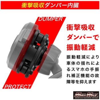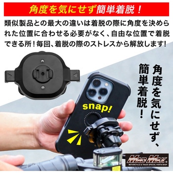 360度どの位置からでもスマホを脱着可能!角度を合わせて取り付ける必要はありません。衝撃吸収ダンパー付きで走行中のスマホへの振動を軽減します。貼り付け式アダプター採用でどんなスマホにも対応します。クランプアーム部分は360度回転するのでお好きな角度で使用出来ます。また、クランプアームは耐久性の高いアルミを使用しており腐食性に優れています。別売りの機種専用ケースを使用する事でさらに快適にEasy Snapホルダーをご使用頂けます。※走行中は必ず付属の落下防止バンドを使用して下さい。