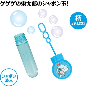 ゲゲゲの鬼太郎といっしょにシャボン玉であそぼう!ゲゲゲの鬼太郎と目玉おやじの可愛いイラストがついたシャボン玉スティックです。シャボン液入りなので開けてすぐに遊べます。軽くて持ちやすいので小さなお子さまでも遊びやすいサイズです。お外遊びやイベントの景品としてもおすすめです。