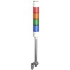 高輝度LEDを採用のΦ50mm LED積層表示灯で機械や設備の稼働状況を明確に視認できるよう設計、洗練されたデザインと安心の品質で装置の見える化をサポート、主要な認証取得済み、保証期間18か月間、NPN/PNPオープンコレクタ接続に標準対応、ポール+L金具取付、ブザー付き