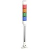高輝度LEDを採用のΦ50mm LED積層表示灯で機械や設備の稼働状況を明確に視認できるよう設計、洗練されたデザインと安心の品質で装置の見える化をサポート、主要な認証取得済み、保証期間18か月間、NPN/PNPオープンコレクタ接続に標準対応、輸送・設置に便利なポール+可倒式台座、ブザー付き