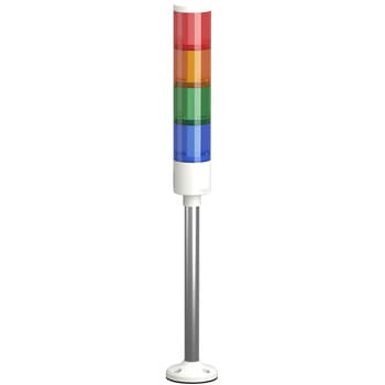 高輝度LEDを採用のΦ50mm LED積層表示灯で機械や設備の稼働状況を明確に視認できるよう設計、洗練されたデザインと安心の品質で装置の見える化をサポート、主要な認証取得済み、保証期間18か月間、NPN/PNPオープンコレクタ接続に標準対応、ポール+円形台座