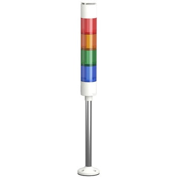 高輝度LEDを採用のΦ50mm LED積層表示灯で機械や設備の稼働状況を明確に視認できるよう設計、洗練されたデザインと安心の品質で装置の見える化をサポート、主要な認証取得済み、保証期間18か月間、NPN/PNPオープンコレクタ接続に標準対応、ポール+円形台座、ブザー付き