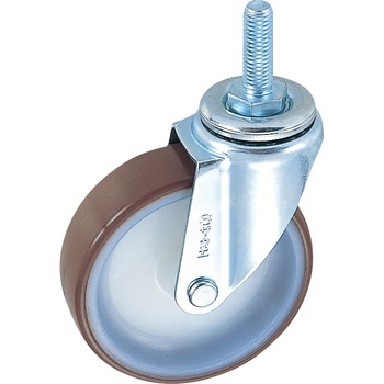 ナイロンウレタン車を使用していますので、耐油性、耐摩耗性、低温特性に優れております。比較的、表面硬度も低く、かつ床面の汚染度が少ないことから室内で多く使用されています。