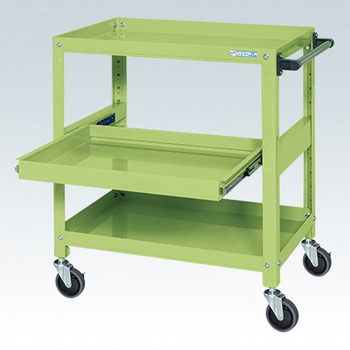エラストマー車を使用しているツールワゴンですので、ゴム車と同等の弾性を持っており床面への損傷・汚れが少なく軽量です。
