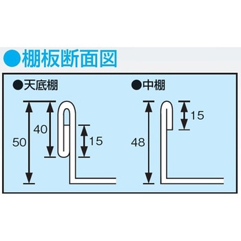 棚板コーナー部は、サカエ独自の支柱突き合せ型及び、2重折り構造の為、ぐらつきが無く、また棚板の強度も高く堅牢です。