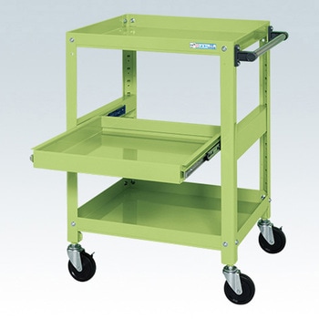 ゴム車を使用しているツールワゴンですので、表面硬度が低く、弾性を持っている為、凹凸のある路面でも容易に走行し安定性があると同時に騒音性が少ないです。