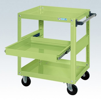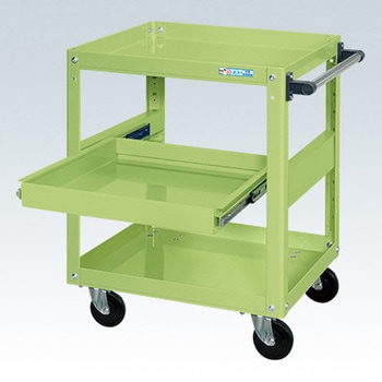 ゴム車を使用しているツールワゴンですので、表面硬度が低く、弾性を持っている為、凹凸のある路面でも容易に走行し安定性があると同時に騒音性が少ないです。