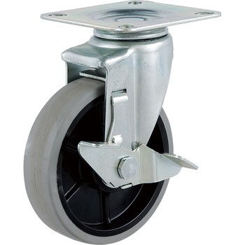 ナイロンウレタン車を使用していますので、耐油性、耐摩耗性、低温特性に優れております。比較的、表面硬度も低く、かつ床面の汚染度が少ないことから室内で多く使用されています。
