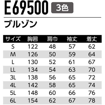 | 69365260 | E69500 | オリーブ | 3L | 138 | 56 | 65 | | ¥20,500 | ¥11,980 | ¥13,178(税込) |
