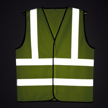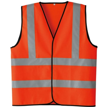 JIS規格の厳しい基準に合格した素材(ポリエステル100%)と50mm巾の再帰性反射材を使用し360°の視認性を実現。