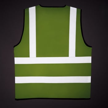 両肩越しに再帰性反射材を使用し、しゃがんだ際でも安心安全な仕様。