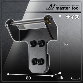 MASTER TOOLの腰道具PROシリーズのアタッチメント。コンベックスホルダーに装着可能で、通常のフロートプレートだとデッドスペースになる部分にビットホルダーを追加することができる。ビットホルダー部分を斜めにすることによって、コンベックスホルダーの解除ボタンを押しやすくなる。穴径が5mmなら他社のビットホルダーも装着可能。接続部の材質はアルミ合金材・ステンレス材なので、摩耗にも強い。