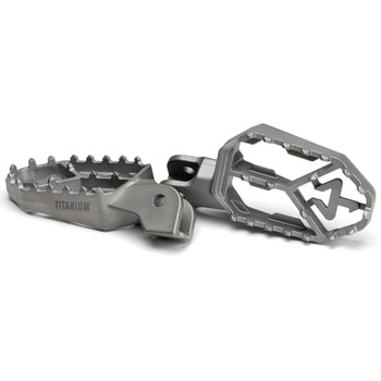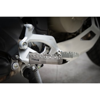 アクラポヴィッチが軽量素材を扱う中で培ったノウハウが活かし、グレード5チタンを自社工場で鋳造したワンピース構造のフットペグ。アクラポヴィッチ独自の八角形デザインとY字補強により、高い強度と安定性を実現し、オン・オフ問わず優れたグリップとコントロール性を提供します。