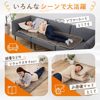 ふわふわで滑らかな肌触りが心地よい、フランネル素材のごろ寝マットです。フランネルの極細繊維が暖かい空気をたっぷり抱え込むから、床にそのまま敷くだけで冷気を遮り、ぽかぽか快適なくつろぎ空間に。軽くて持ち運びやすく、お手入れも簡単。ご家庭の洗濯機で洗えます。ソファーシートとしてもお使いいただけます。