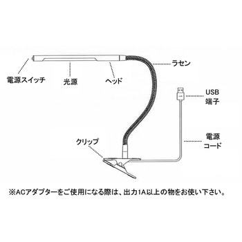 USB Type-A電源のシンプルなクリップライトです。電源スイッチ長押しで調光、また電源押すたび光色の切り替わります。※ACアダプターの付属はありません。ACアダプターでご使用になる際は出力1A以上のものをお使いください。