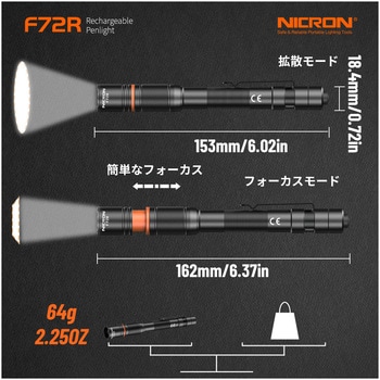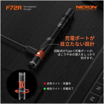 持ち運びにピッタリのペン型ライト。簡単にフォーカスライトが出来るので、点検やチェック作業にピッタリ。明るさ3段階調節可能。最大450LM簡単なフォーカス機能付。ペン型フォーカスライトのため、狭い場所で活躍します。点滅・SOSモード付充電方法:本体真ん中部分(USBマーク部分)をひねると充電口が現れます。タイプC充電口付き。充電中は充電口のインジケーターが赤色で充電中、満充電になると緑色が点灯。