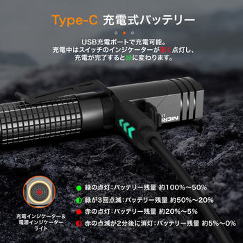 Type-C USBケーブルを使用し、5V出力のスマートフォン用充電器に対応しています。
