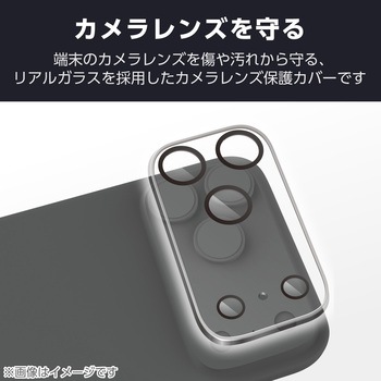 端末のカメラレンズを傷や汚れから守る、リアルガラスを採用した角割れ防止タイプのカメラレンズ保護カバーです。