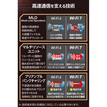 用途Wi-Fi 7対応でさらなる高速、低遅延で快適な通信を実現します。