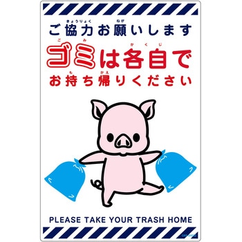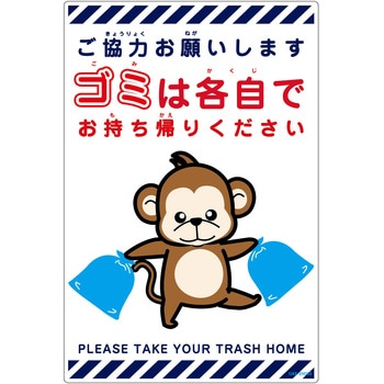 ゴミは各自持ち帰り標識動物柄PP縦小白H450XW300