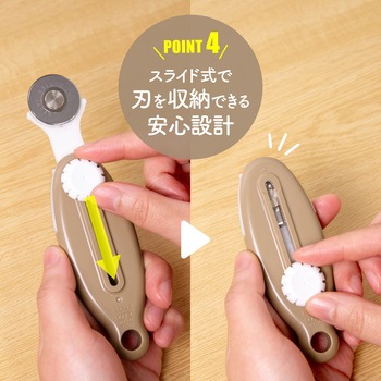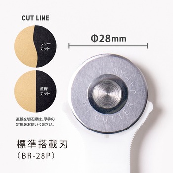 丸刃を転がしながら切るので、伸びやすい素材もよれずにカット。直線も曲線も切りやすい小回りが利く刃直径28mm。