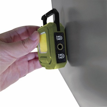 手のひらに収まるサイズなのに驚きの明るさ。多彩な点灯モード:COBライト(1灯・2灯)/スポットライト/全点灯/ブースト。最大500lm(ブースト時)は懐中電灯クラスの強力な光量。通常使用でも250lmとキャンプや作業に十分。1灯COBなら最長10時間使用でき、省エネ設計。約2.5時間で満充電 → 急な外出や作業でも使いやすい。フック、マグネット付きなので色々な場所で活躍。栓抜き付き。