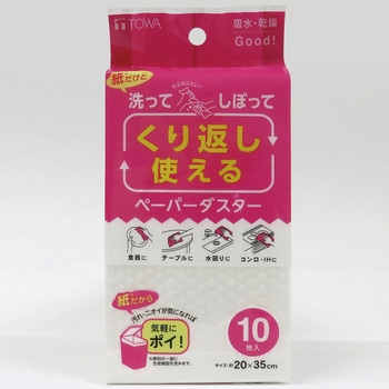 紙だけど洗ってしぼってくり返し使える。吸水・速乾性の良いペーパーダスターです。食器・テーブル拭きに。水周り・コンロ・IHなどの掃除に。汚れ・ニオイが気になれば、紙だから気軽に捨てられます。(※原料の一部に合成樹脂を含みます。)