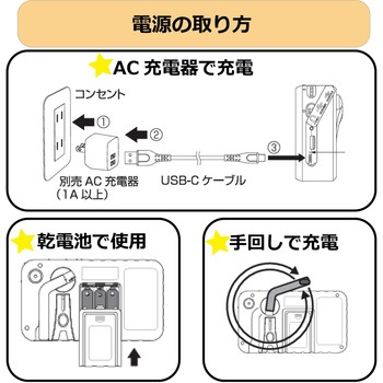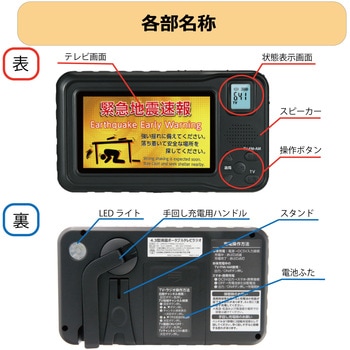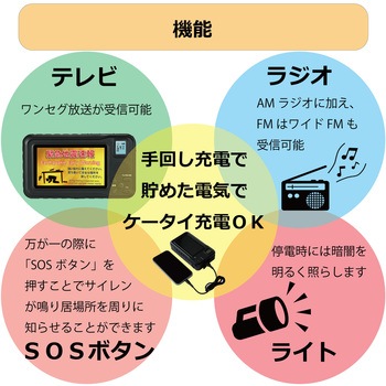 ラジオ、ワンセグ放送がこれ1台で視聴可能!内蔵充電池、単3形乾電池、USB電源の3電源方式。