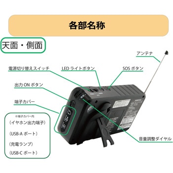 LEDライト点灯機能、電力の出力で携帯電話の充電が可能。アウトドアや災害時の備えに最適!