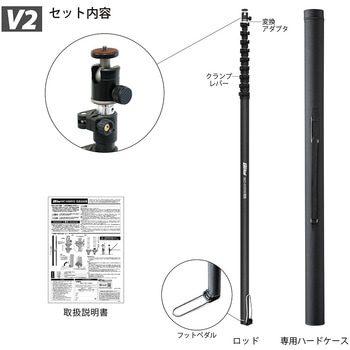 最長11.5m、収納時1.7mまで伸縮可能な全10段カーボン製ロングポールで、三脚なし・専用フットペダル付きの業務用仕様です。