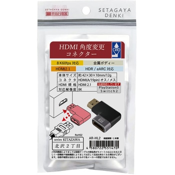 HDMI 2.1規格に対応し、8K60fps・4K120fpsの超高解像度映像伝送を実現するHDMI角度変更コネクター。上下左右4方向のバリエーション、それぞれ会う方向をお選びいただけます。 壁掛けテレビやAVラックの配線問題の解決にもおすすめです。金属ボディーで放熱性・耐久性に優れ、PlayStation5とSwitch2の高精細な映像を正確に表示できます。