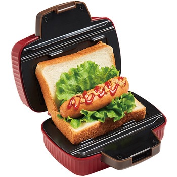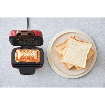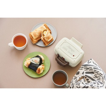 食パン1枚とお好きな具材で、食べきりサイズのおいしいホットサンドが手軽に作れる[プレスサンドメーカー ミニ]。食パンの他、ホットケーキミックスやパイシート、ごはんにも使えるので、毎日の朝食やランチ、おやつ作りに大活躍!ピクニックバッグを思わせるかわいいフォルムとレトロなムードのカラーでキッチンを彩る、おしゃれなホットサンドメーカーです。