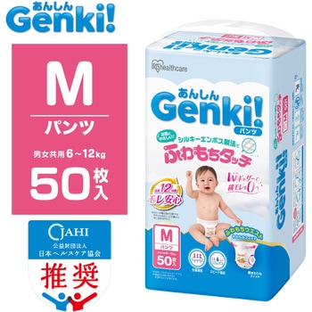 国内自社工場で生産したパンツタイプのベビー用紙おむつです。シルキーエンボス製法により不織布の表面の盛り上がりを大きくすることで、ふわふわ・もちもちのやわらかい肌触りを実現しました。全面通気シートを採用することで、ムレを防ぎ、赤ちゃんの肌への負担を軽減します。スピード吸収でしっかり吸収し、逆戻りしにくくなっています。最長12時間吸収です(※おむつの吸収量の目安です。赤ちゃんのおしっこの量には個人差があります)。ふわもちウェストは締めつけすぎず、やわらかフィットです。脚まわりは内側のWギャザーでぴったりフィットし、横漏れを抑えます。おむつ替えが楽しくなる、かわいらしい動物デザインです。ラインの色の変化で替え時が一目でわかる、おしっこお知らせサイン付きです
