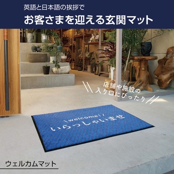 英語と日本語、両方の挨拶を取り入れたデザインでお客様を迎える除塵性能を備えたマット。店舗等の施設にピッタリなデザインマットです。