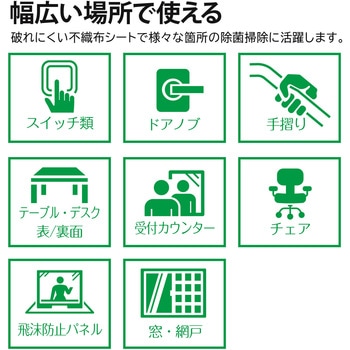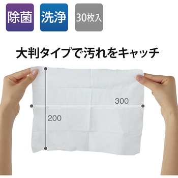 除菌と洗浄が同時にできるウェットクロス。厚手タイプの不織布シートでしっかり拭けます。ベタつきが少ない大判タイプのシートです。