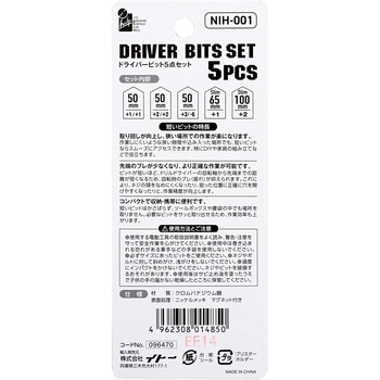 家具の組立などによく使われるビットを厳選してまとめた便利な5点セットです。DIY作業、家具組立などこれ一つあればOK!先端に磁力を帯びており、小さなねじもどこかへ飛んで行く心配がありません。短めビットは込み入った場所に、長めビットは狭い隙間などの作業に役立ちます。