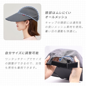 大きいツバで日差しをしっかりガードする、風通しのよいウォーキングキャップです。帽子内側の肌にあたる部分に吸水・速乾性に優れた生地を使用しており、ウォーキング中もサラッと快適です。頭部はオールメッシュでムレにくく、立体的な形状で頭にフィットします。ワンタッチテープでサイズ調整可能です。あご紐付きです。